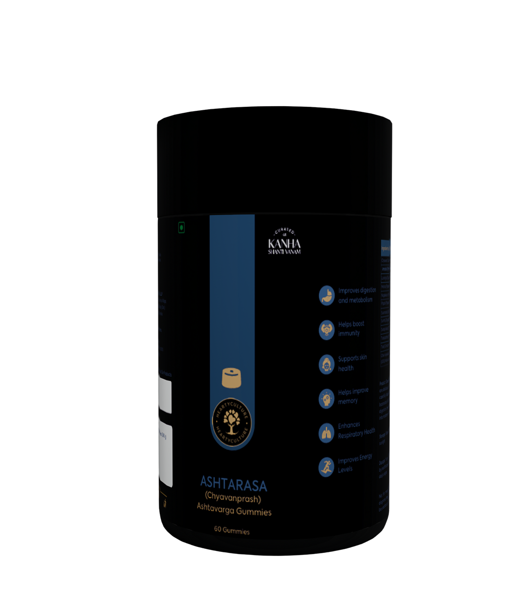Heartyculture Ashtarasa Gummies bring the essence of classical Chyawanprash into a light, enjoyable form. Crafted with the revered Asthavarga formulation—a traditional blend of eight rare rejuvenating herbs—these gummies support strength, immunity, and overall vitality.