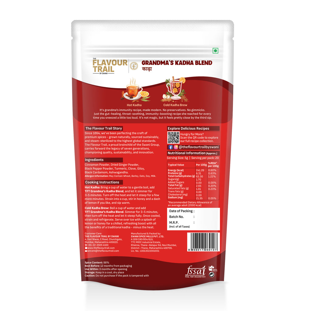 Grandma’s Kadha Blend is made with a mix of organic herbs like Ginger, Black Pepper, Turmeric Powder, Cinnamon and Cloves.
