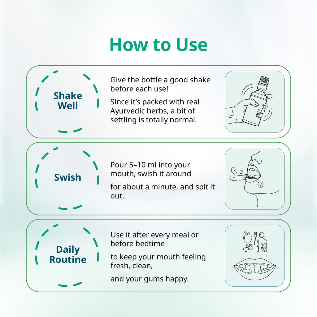 - Clean, Conscious Oral Care – Free from alcohol, parabens, artificial flavours, and synthetic preservatives. Safe for long-term, everyday use.