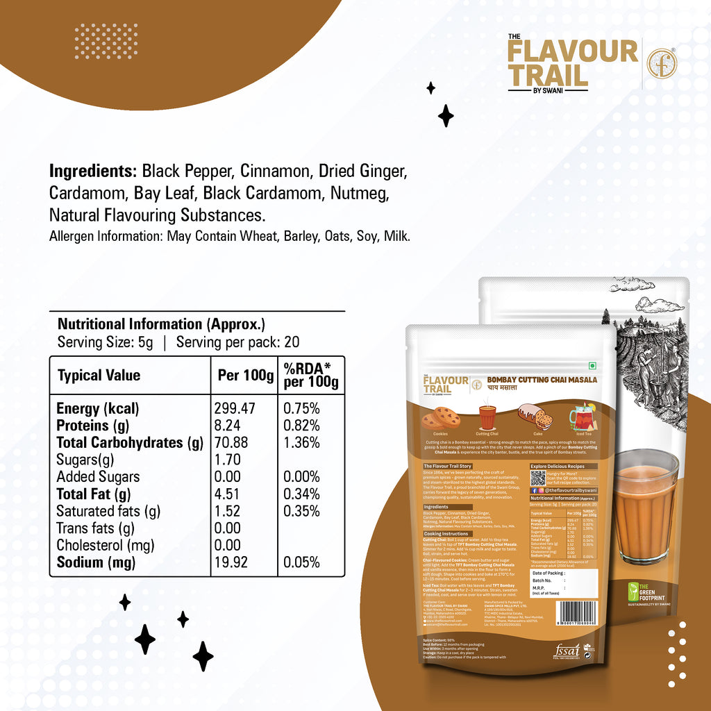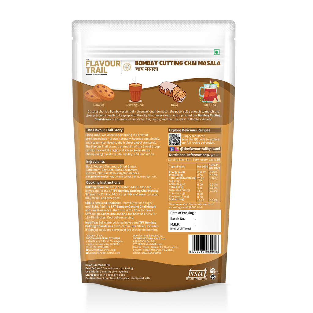 Bombay Cutting Chai Masala is a perfect blend of select spices that pep up your tea without having to crush and pound individual spices